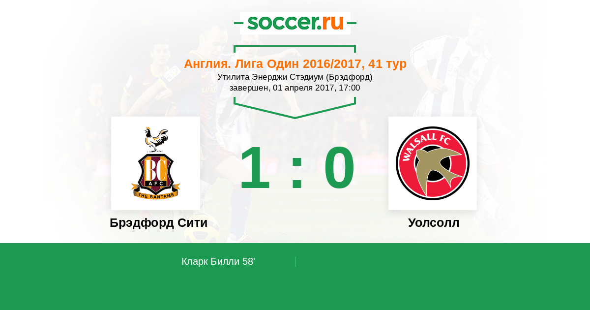 58' (1:0) Кларк Билли (10) (Джонс Алекс (19))