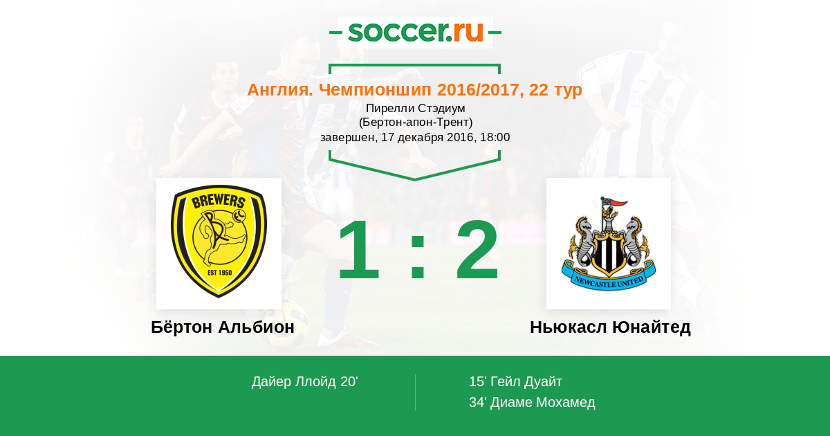 34' (1:2) Диаме Мохамед (15) (Гейл Дуайт (9))