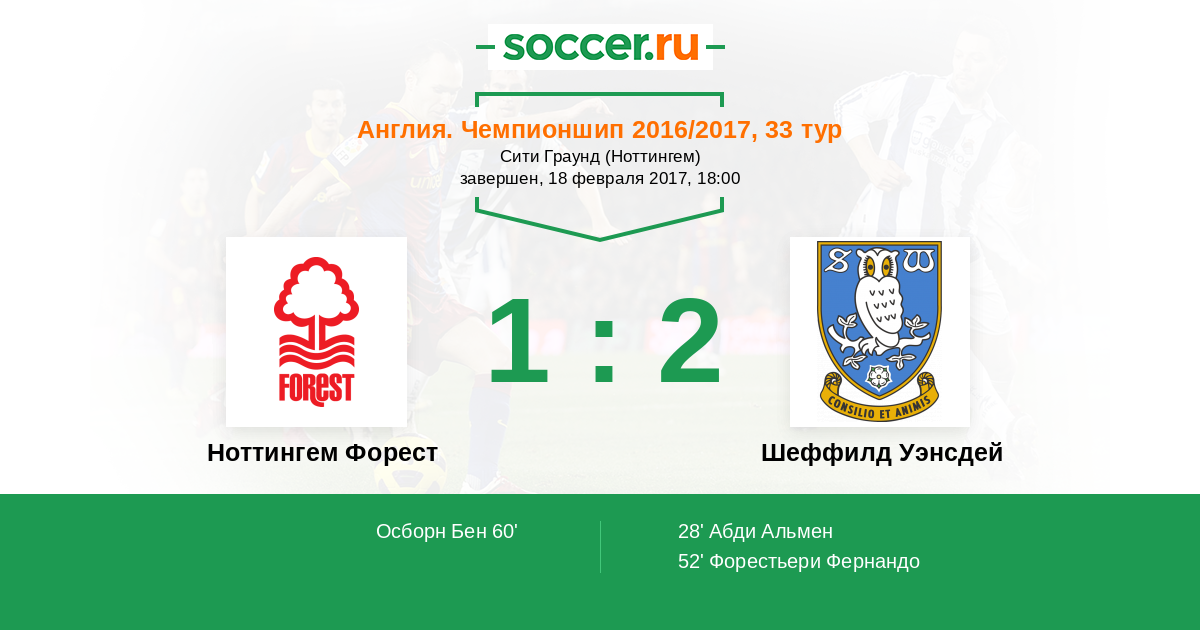 60' (1:2) Осборн Бен (11) (Бреретон Бен (45))