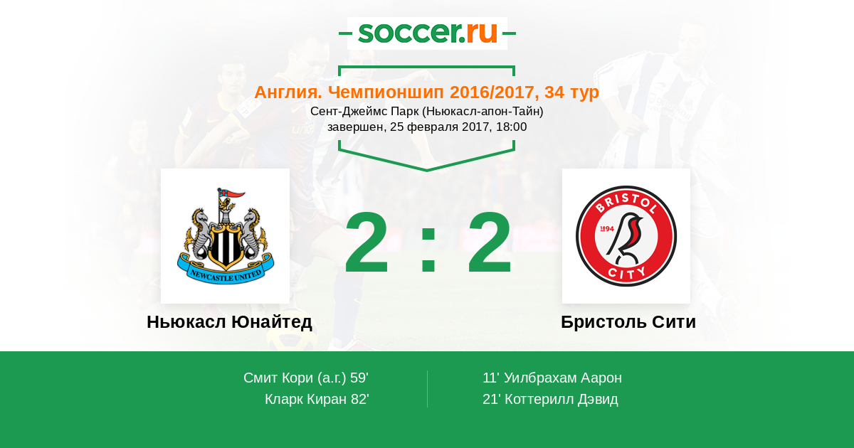 82' (2:2) Кларк Киран (2) (Ритчи Мэтт (11))