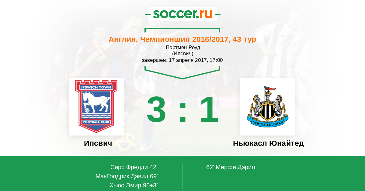 42' (1:0) Сирс Фредди (20) (Лоуренс Том (27))