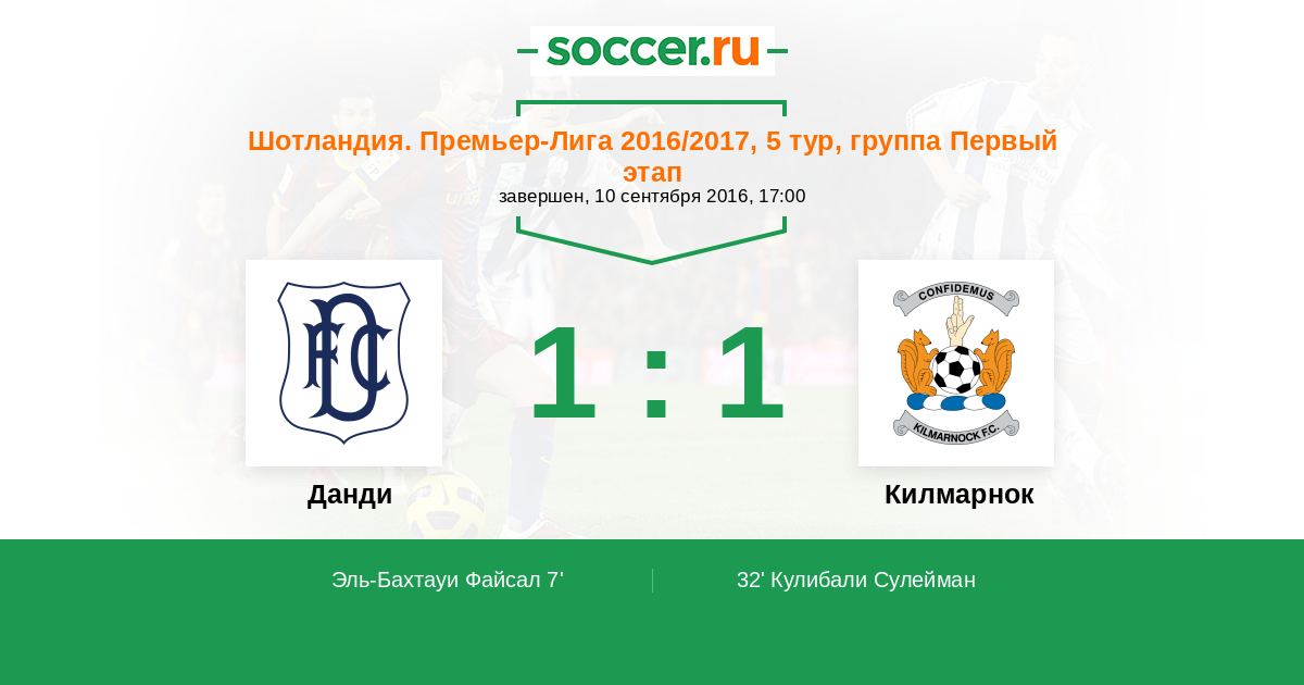 32' (1:1) Кулибали Сулейман (19) (Хаукшоу Дин (33))