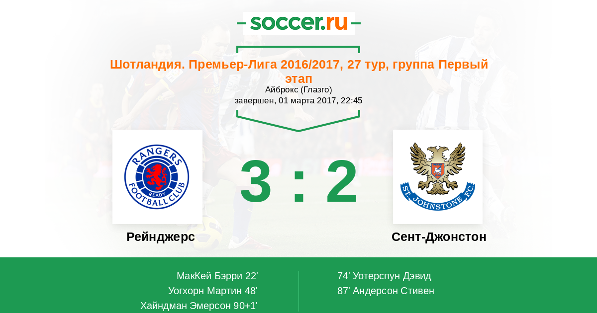 74' (2:1) Уотерспун Дэвид (10) (Крэйг Лиам (26))