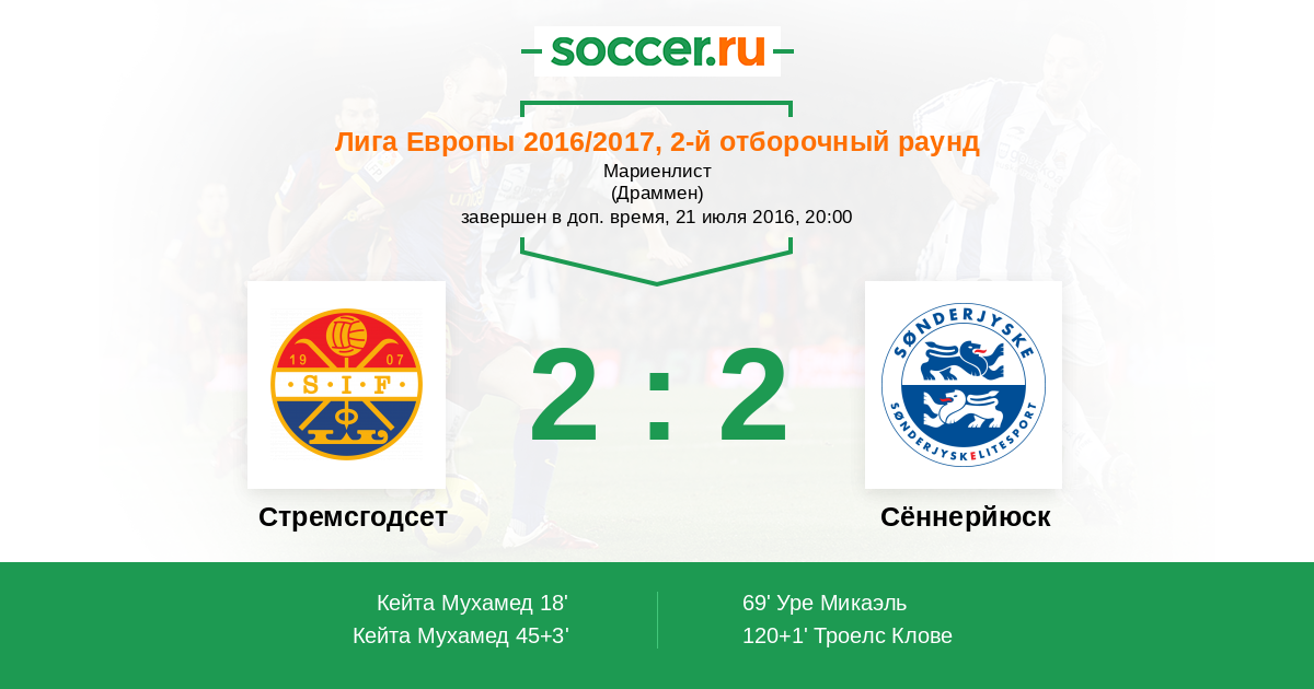 Запасные: 15 Троелс Клове (с 72'), 9 Бекманн Томми (с 81'), 14 Хедегор Миккель (с 119'), 2 Риттер Николай, 13 Олесен Каспер, 28 Фернандес Лукас, 33 Томас Далгорд