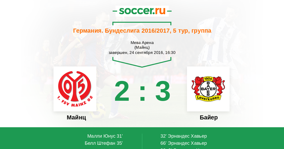 66' (2:2) Эрнандес Хавьер (7) (Кисслинг Штефан (11))