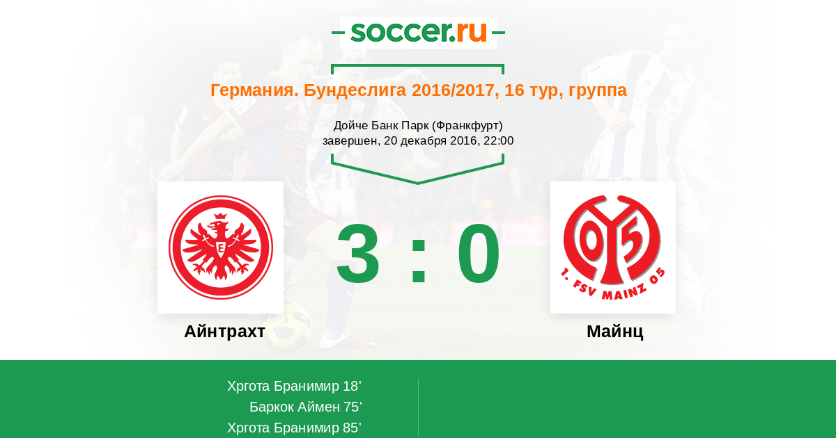 18' (1:0) Хргота Бранимир (31) (Абрахам Давид (19))