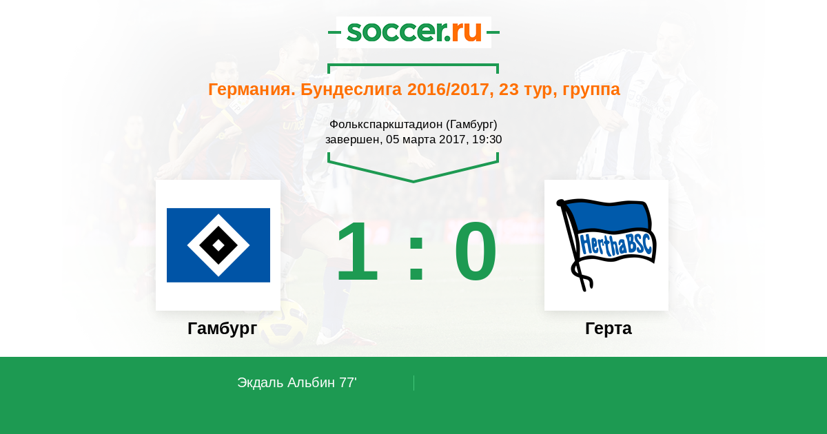 77' (1:0) Экдаль Альбин (20) (Хант Аарон (14))