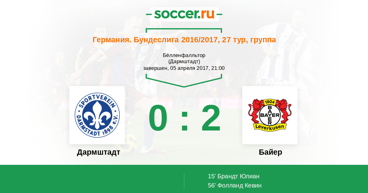 15' (0:1) Брандт Юлиан (19) (Фолланд Кевин (31))