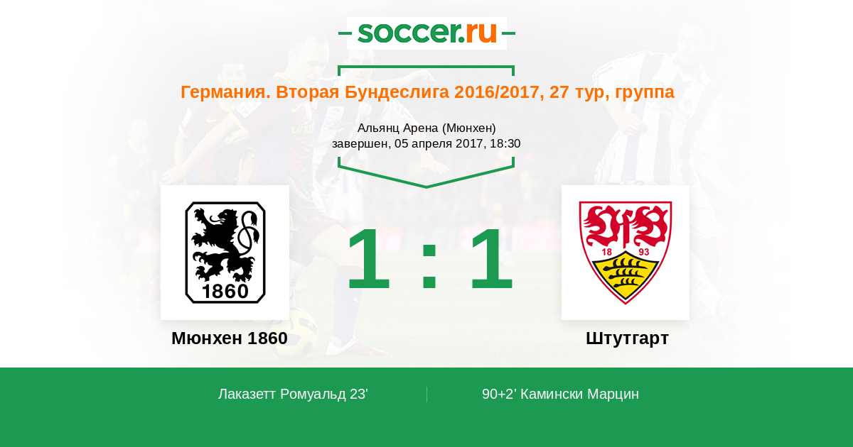 23' (1:0) Лаказетт Ромуальд (38) (Амилтон (30))