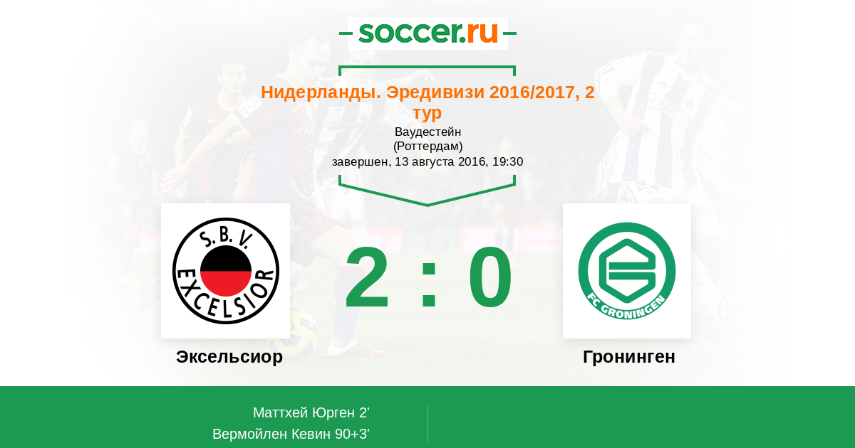 Запасные: 5 Мемишевич Самир (с 28'), 45 Идрисси Уссама (с 56'), 9 Хусен Дэнни (с 68'), 32 Боргман Ник, 12 Бакуна Жуниньо, 21 Ван дер Лаан Мартин, 11 Линссен Брайан, 28 Тамата Абель, 22 Тибблинг Симон, 16 Ван дер Лей Стефан