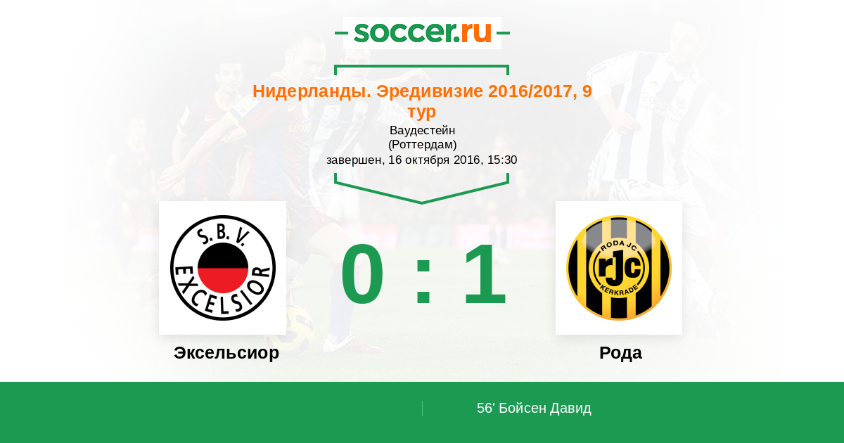 56' (0:1) Бойсен Давид (21) (Де Силва Данни (10))