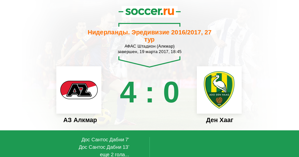 13' (2:0) Дос Сантос Дабни (19) (Вуйтенс Стейн (30))