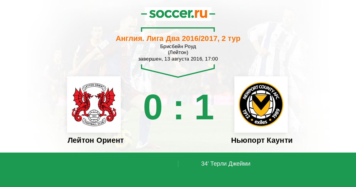 34' (0:1) Терли Джейми (5) (Марлон Джексон (13))