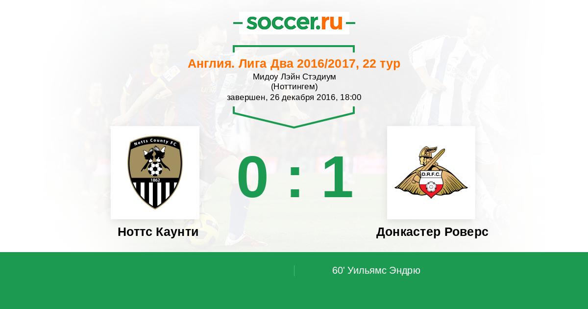 60' (0:1) Уильямс Эндрю (11) (Роу Томми (10))