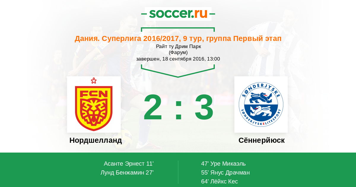 27' (2:0) Лунд Бенжамин (29)