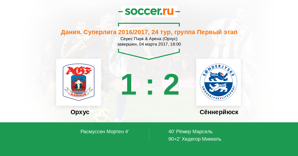 90+2' (1:2) Хедегор Миккель (14)
