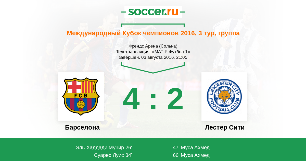 26' (1:0) Эль-Хаддади Мунир (17) (Месси Лионель (10))
