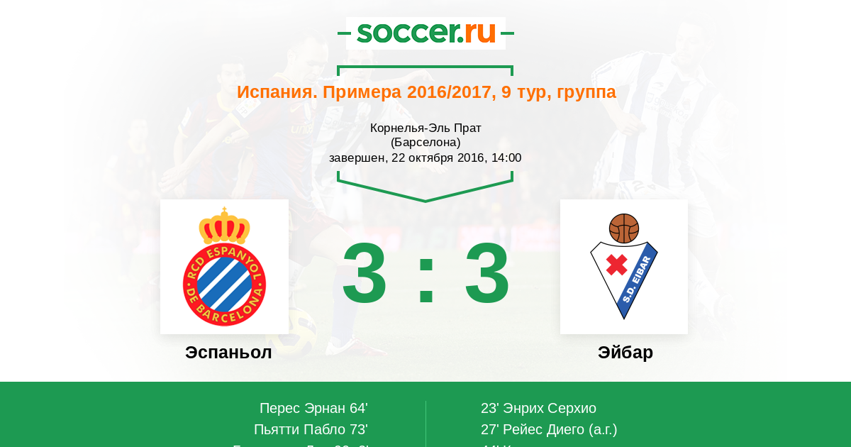 44' (0:3) Кике (17) (Энрих Серхио (9))