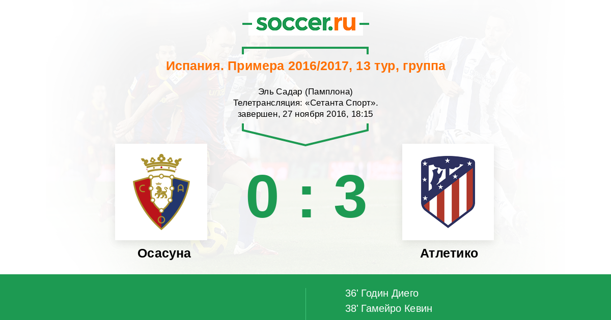 36' (0:1) Гол после углового Годин Диего (2) (Коке (6))