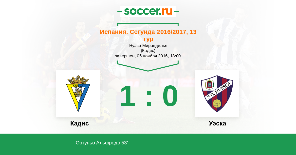 53' (1:0) Ортуньо Альфредо (19)