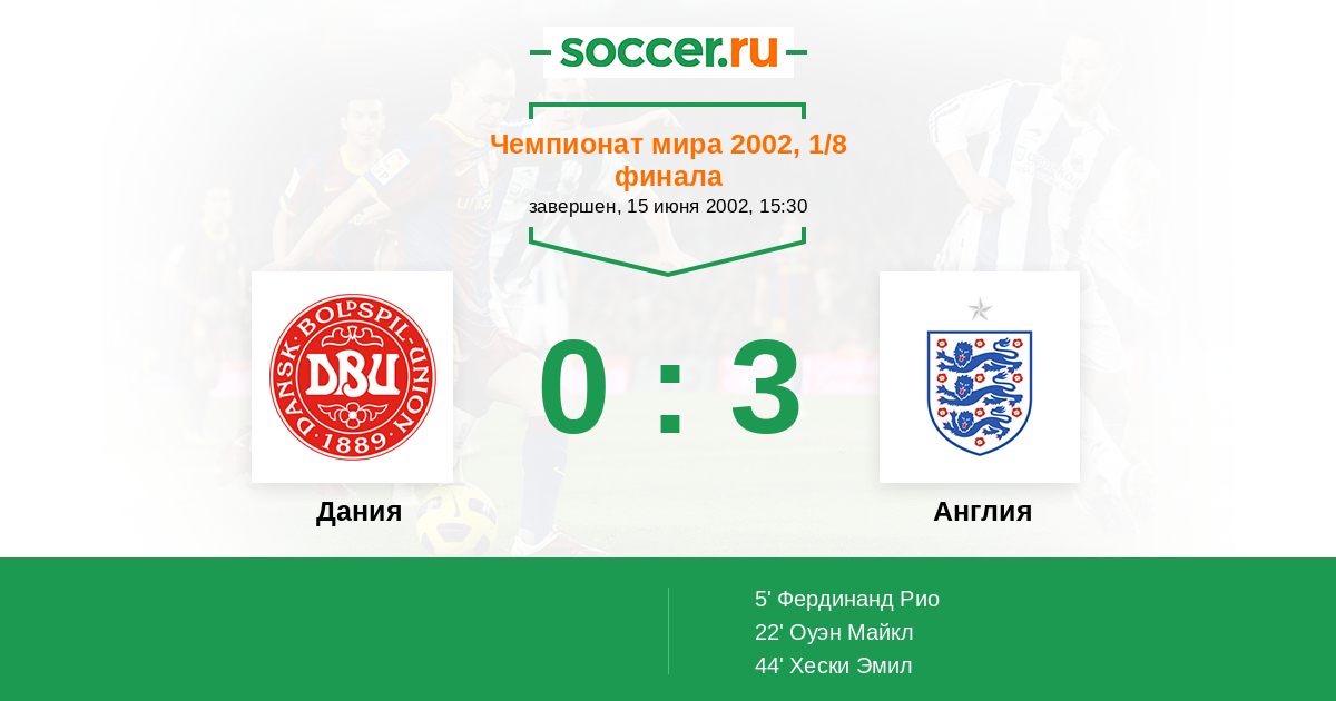 5' (0:1) Фердинанд Рио (5) (Бекхэм Дэвид (7))