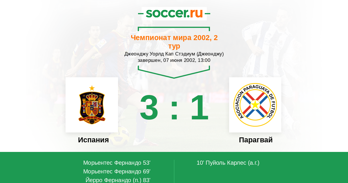 Запасные: 4 Эльгера Иван (с 46'), 9 Морьентес Фернандо (с 46'), 19 Хави (с 85'), 2 Торрес Курро, 12 Луке Альберт, 13 Рикардо, 14 Альбельда Давид, 15 Ромеро Энрике, 16 Мендьета Гаиска, 18 Серхио, 22 Хоакин, 23 Контрерас Гонсалес Педро