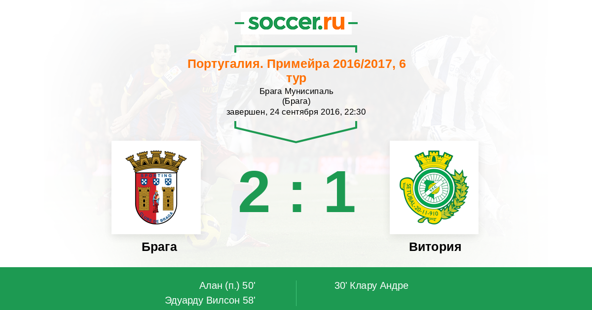 58' (2:1) Эдуарду Вилсон (7) (Алан (30))