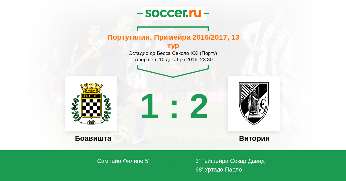 3' (0:1) Тейшейра Сезар Давид (91) (Рафинья (81))