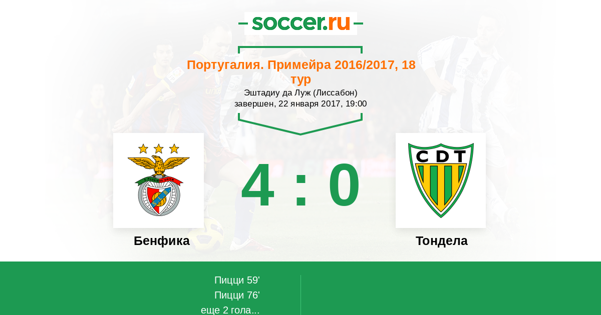 76' (2:0) Пицци (21) (Семеду Нелсон (50))