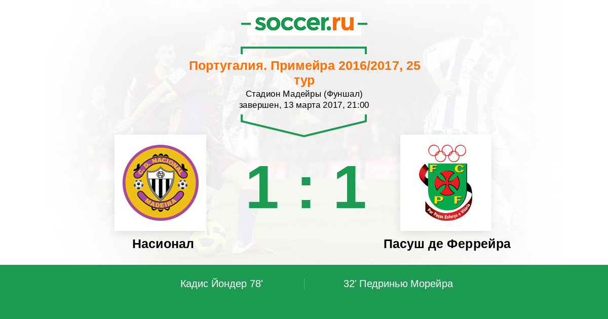 78' (1:1) Кадис Йондер (18) (Родригеш Тиагу (10))