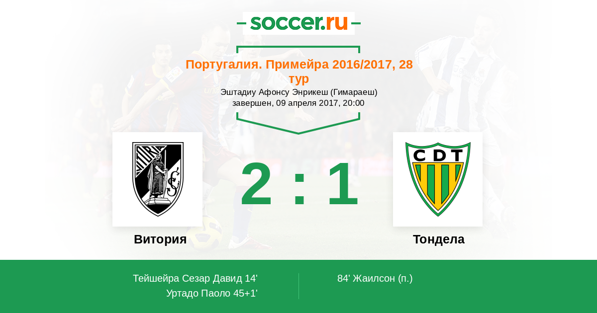 14' (1:0) Тейшейра Сезар Давид (91) (Эрнани (9))