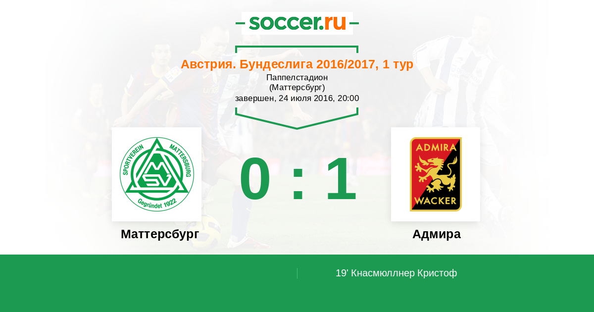 19' (0:1) Кнасмюллнер Кристоф (8) (Востри Маркус (21))