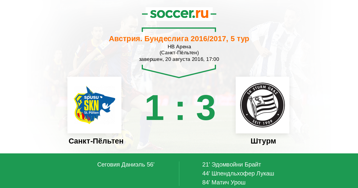 21' (0:1) Эдомвойни Брайт (34) (Хирлендер Штефан (25))