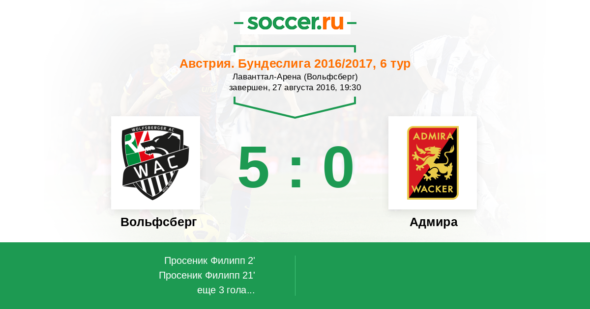 2' (1:0) Просеник Филипп (14) (Штандфест Йоахим (25))