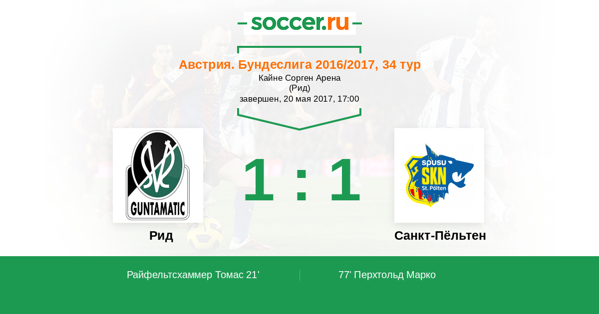 21' (1:0) Райфельтсхаммер Томас (28) (Нутц Штефан (7))