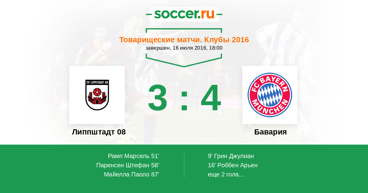 16' (0:2) Роббен Арьен (10) (Лам Филипп (21))
