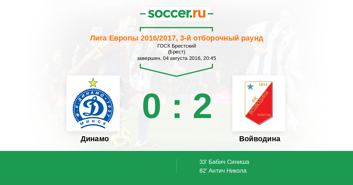74' Бабич Синиша (16) уходит с поля, Трифунович Милош (19) вышел на поле