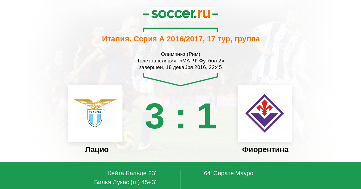 23' (1:0) Кейта Бальде (14) (Милинкович-Савич Сергей (21))