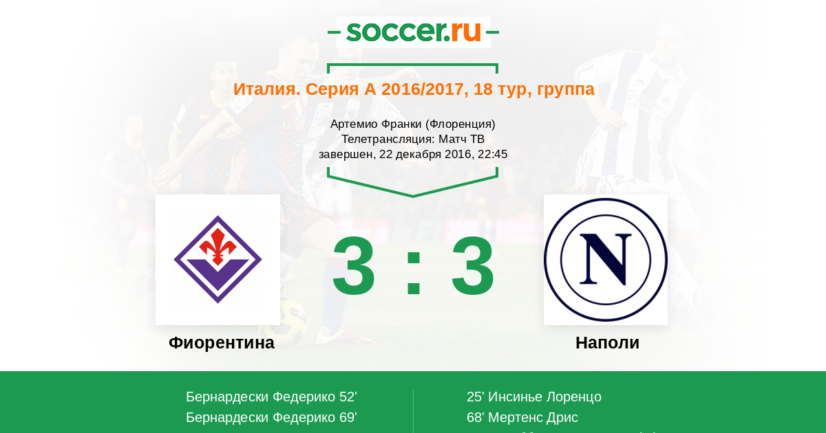 25' (0:1) Инсинье Лоренцо (24) (Гамшик Марек (17))