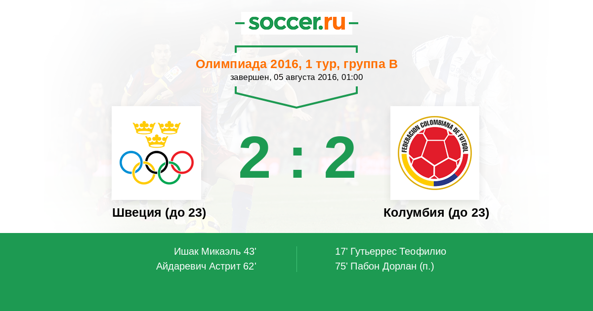 Швеция (до 23) - Колумбия (до 23)