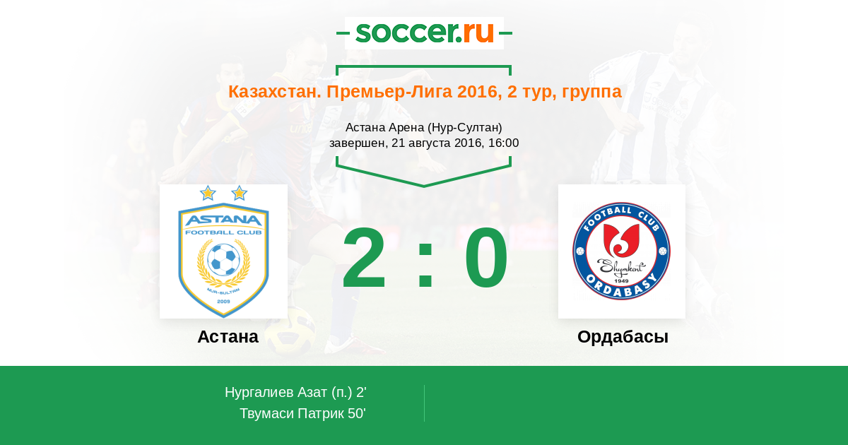 Запасные: Каньяс Рохер (с 46'), Кабананга Жуниор (с 73'), Мужиков Серикжан (с 79'), Мокин Александр, Нахарян Геворг, Жакипбаев Мади, Жунусов Абай, Малый Сергей, Нусербаев Танат