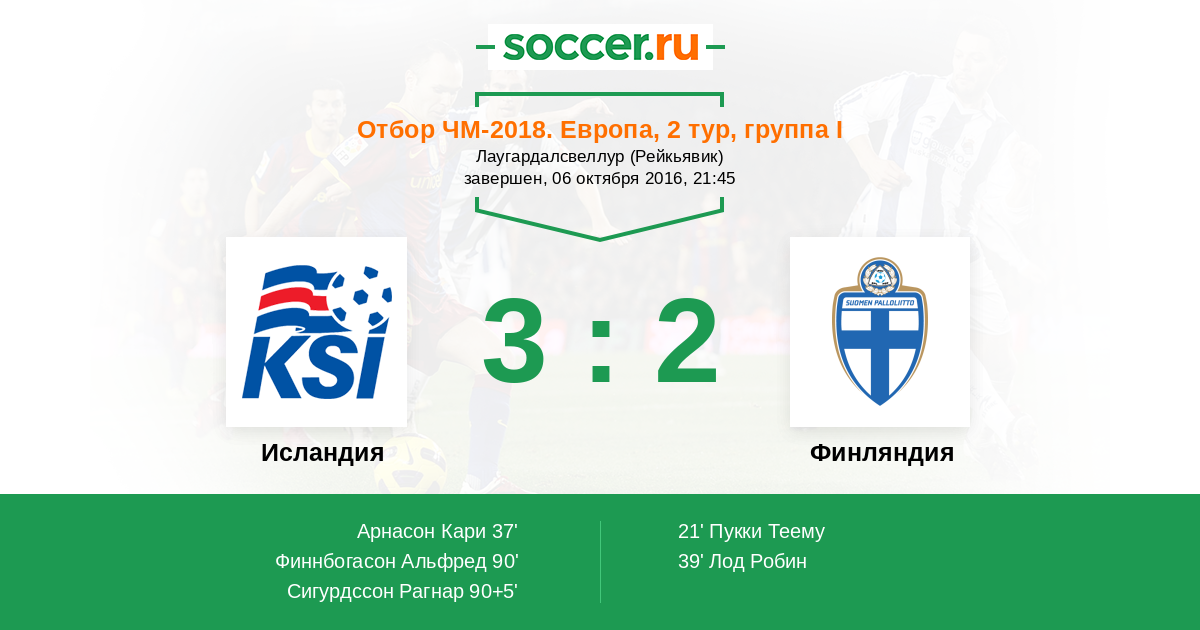 37' (1:1) Арнасон Кари (14) (Гудмундссон Йохан (7))