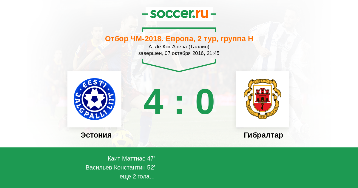 Запасные: 16 Мосников Сергей (с 61'), 11 Оямаа Хенрик (с 65'), 13 Леписту Брент (с 81'), 3 Пикк Артур, 22 Лондак Павел, 12 Миритс Марко, 2 Тармо Неемело, 7 Марин Павел, 19 Калласте Кен, 6 Дмитриев Александр, 9 Пурье Атс, 20 Камс Герт