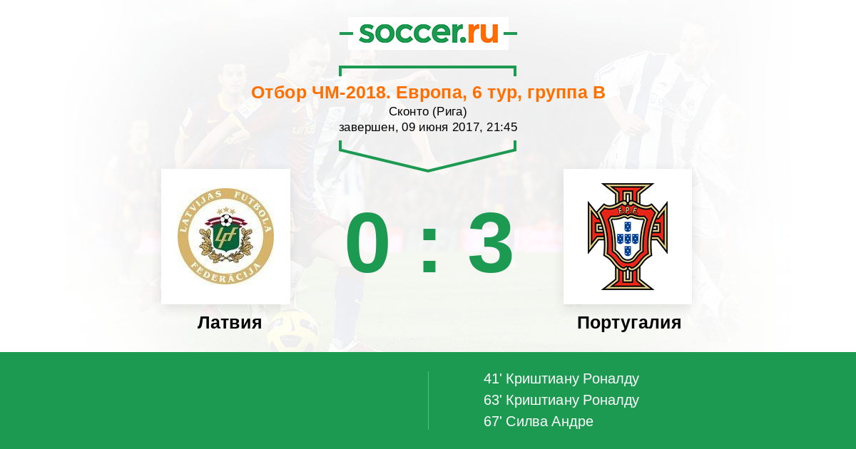 67' (0:3) Силва Андре (9) (Криштиану Роналду (7))