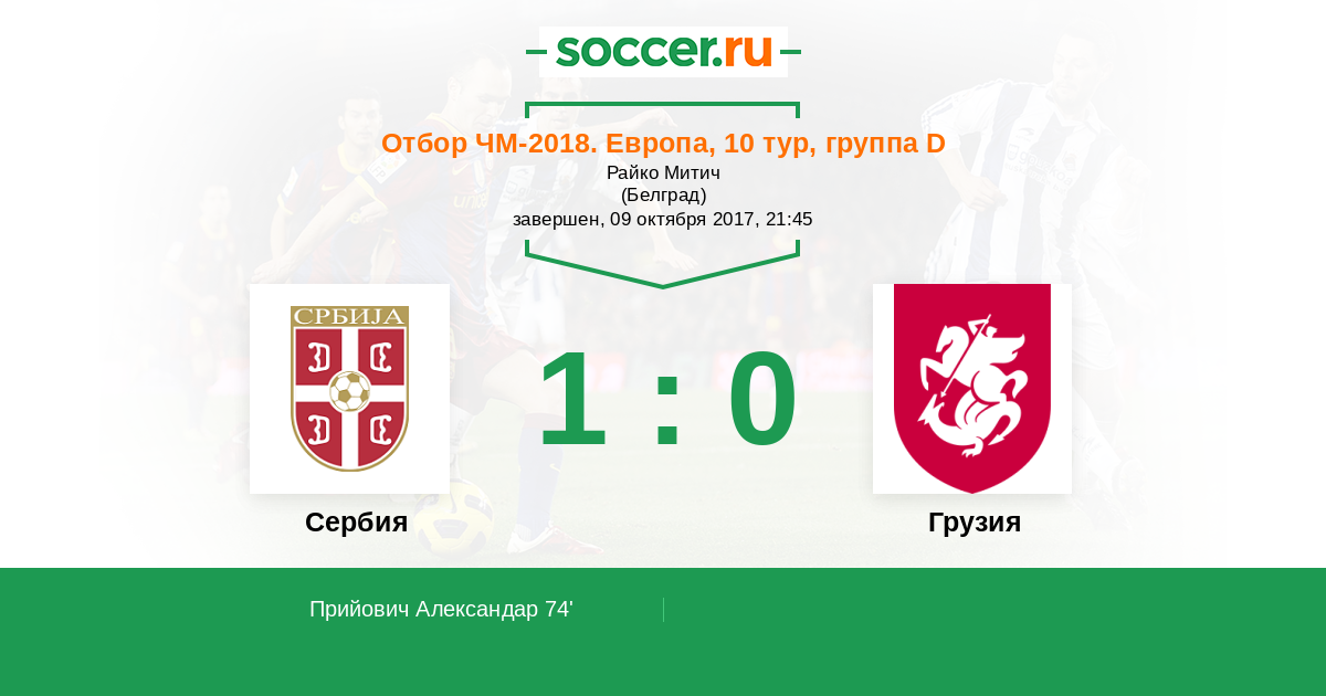 74' (1:0) Прийович Александар (8) (Митрович Александар (9))