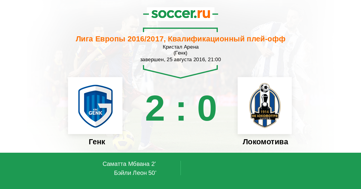 2' (1:0) Саматта Мбвана (77) (Бэйли Леон (31))