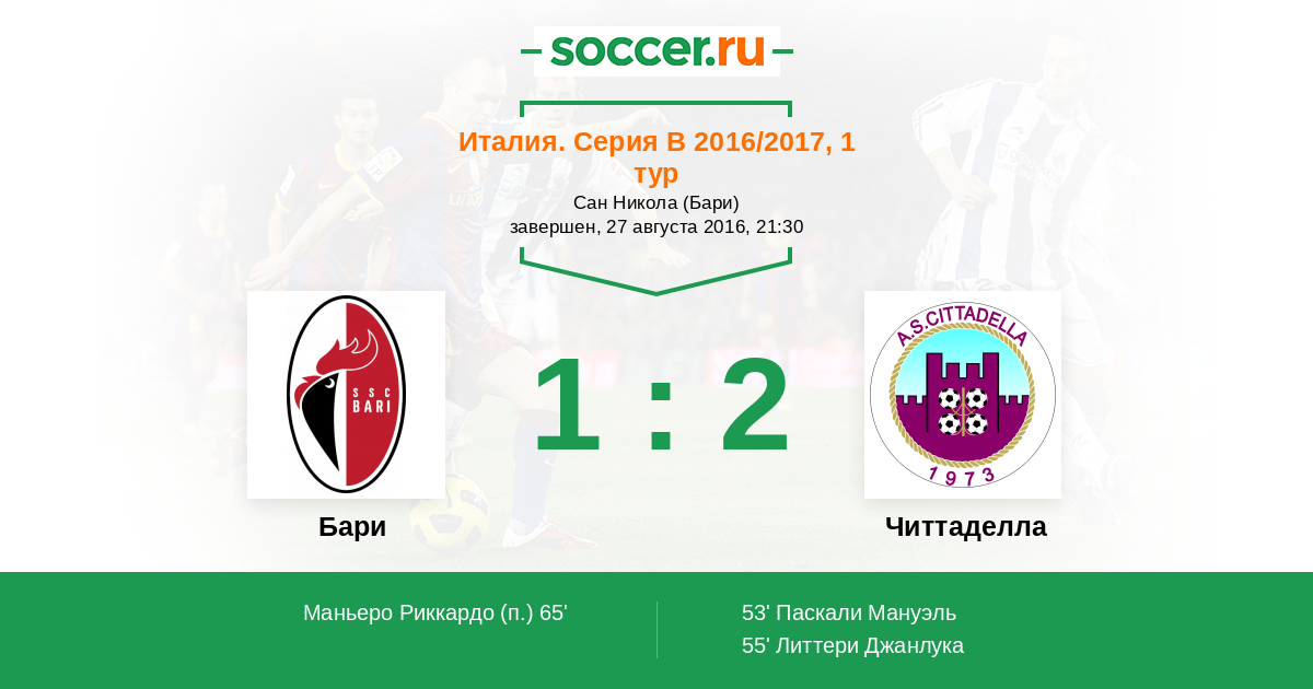 65' (1:2) Маньеро Риккардо (19)