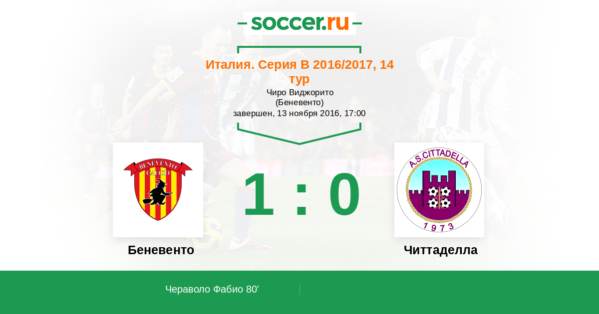 80' (1:0) Чераволо Фабио (9) (Чибса Раман (13))