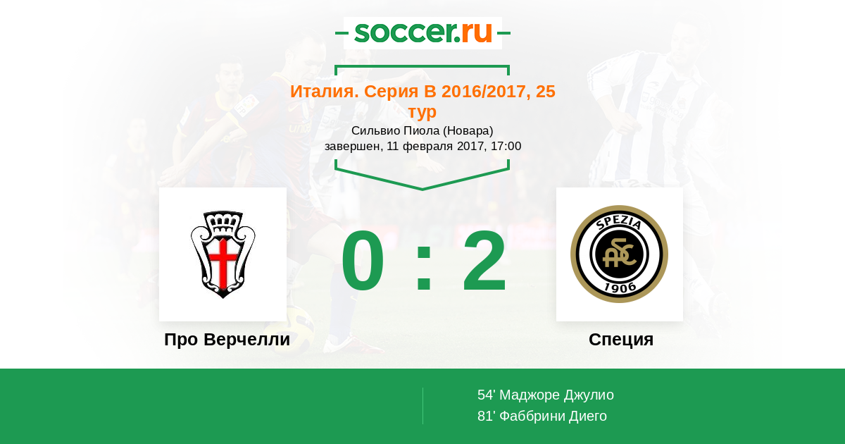 54' (0:1) Маджоре Джулио (25) (Мильоре Франческо (17))