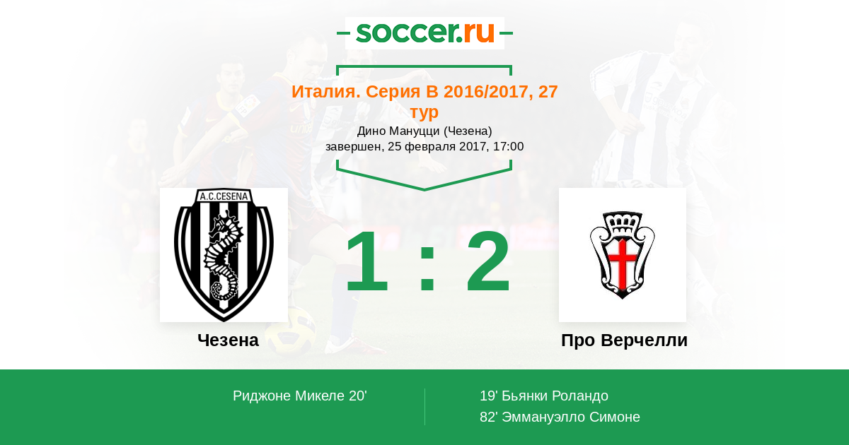 82' (1:2) Эммануэлло Симоне (20) (Бальдини Энрико (23))